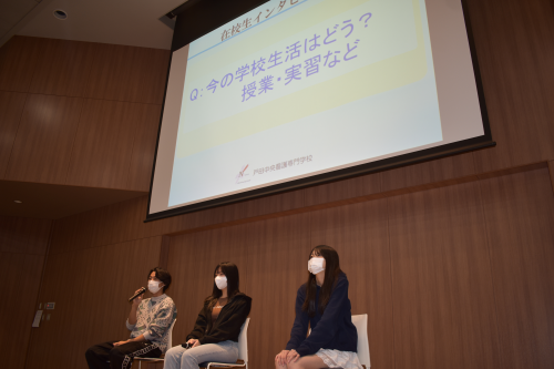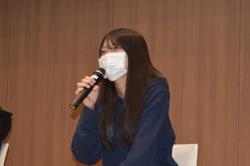 今回のトークショーは、今年の4月に入学した1年生が担当し、緊張しながらも今の思いを参加者に精一杯伝えてくれました。