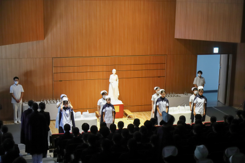 ※戴帽式とは、看護学生が入学から一定期間、看護の基礎(単に知識のみならず、技能力、人間性など)を学び、その評価のもとに看護を職業として選んでいく一つの区切りとして行われる儀式です。誓いの言葉を胸に、夢に向かって歩んでいきましょう。