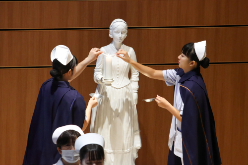 多くのご家族が見守る中、看護師になるという決意を胸に、学生一人ひとりが戴帽できたことを大変うれしく思っております。
